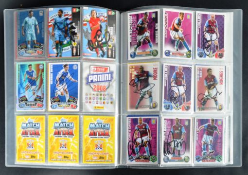 Autographed Football Trading Cards - Collection of signed football trading cards to include cards from Topps Match Attax, Panini and Shoot Out cards. Approximately 153 autographed cards to include autographs from; Tony Pulis, Shaun Wright-Phillips, Christian Benteke, Nigel Adams, Jose Fonte, Wojciech Szcezsny and many others.