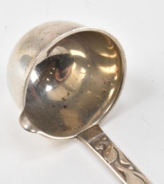 An early 20th Century Danish Evald Nielsen (1879 1958)  silver ladle. The ladle of small proportions with a foliate design handle. Marked EN 830. Measures 13cm.