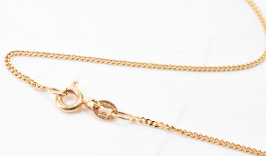 A hallmarked 9ct gold fine link necklace chain together with a cultured pearl necklace having a gold clasp. Chain import marked London, clasp marked 9k. Weight 1.9g. Chain measures 20 inches, pearl necklace measures 16 inches. Chain weight 1.9g.