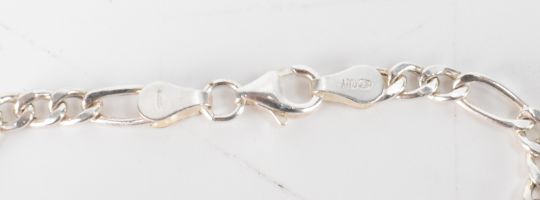 A collection of five 925 silver chain necklaces. The necklaces to include figaro, box and cable link chains. Total weight 40.8g Length range 18 inch to 24 inch.