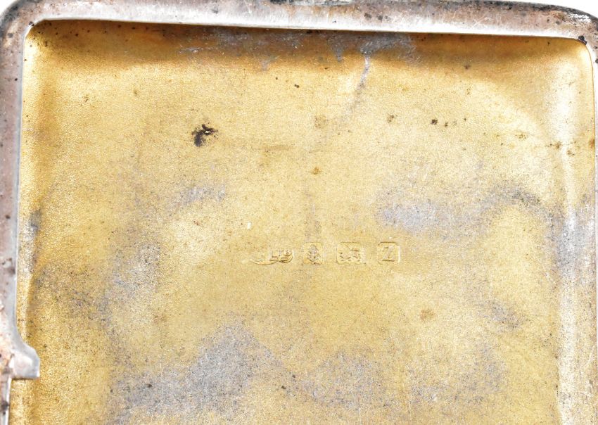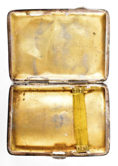 A 1920s Art Deco era hallmarked silver cigarette case. The cigarette case having engraved scrolled foliate detailing with initial panel to the centre. Hallmarked Birmingham 1924, makers marks rubbed. Measures 8 x 6cm. Weight 72g.