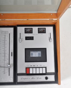 A retro vintage mid 20th Century BSR Compact Max Center vinyl record player. The record player housed within a smoked perspex lidded teak case. Measures approx; 92cm wide.