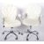 A pair of contemporary office swivel desk chairs / armchairs having faux white leather Chesterfield button backed upholstery with cushioned armrests and seat pad. Both raised on an adjustable single stem upon a five point polished metal star base upon castors. Each arm chair measures approx; 100cm x 62cm x 67cm.