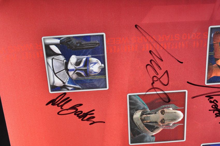 Estate of Jeremy Bulloch - Disney Star Wars Weekends 2010 - Bulloch's personally owned cast signed event exclusive poster, signed by all attending guests. Autographs include; Bulloch (1945-2020), Peter Mayhew (1944-2019), Daniel Logan, Temuera Morrison, Ashley Eckstein, Billy Dee Williams, Dee Bradley Baker, Tom Kane, Ray Park, Matthew Wood, Lorne Peterson, Dave Filoni and James Arnold Taylor. All signed in black ink to a light area, undedicated. All obtained by Bulloch at the event. Rolled. Measures 43cm wide.