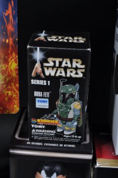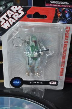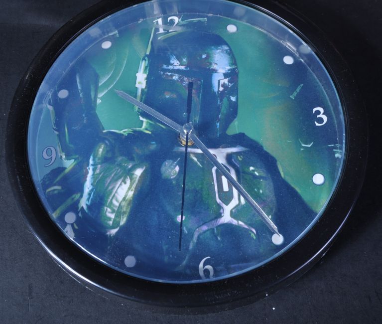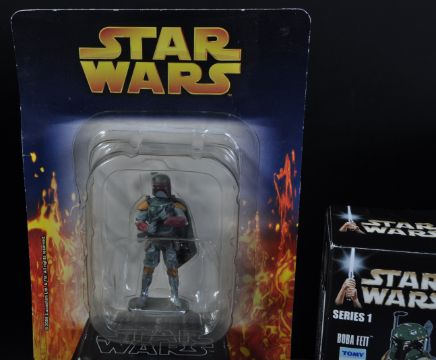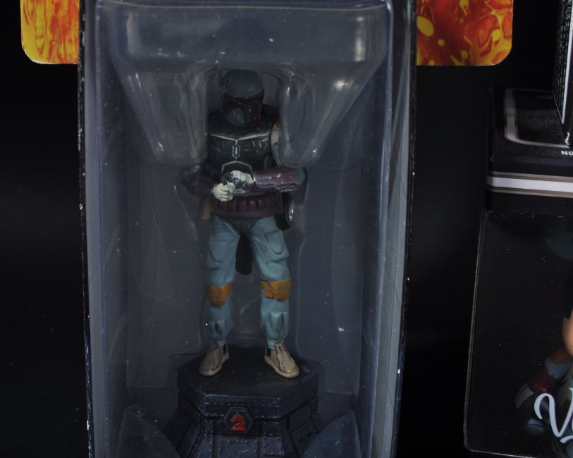 Estate of Jeremy Bulloch - Star Wars - a collection of x10 items of Boba Fett related memorabilia, all smaller items, as displayed in Bulloch's home museum. Includes; Vinylmation action figure, Medicom Kubrick Series 1 Boba Fett, a Boba Fett themed wall clock, keychains, diecast metal figure, vinyl action figure and other items. All generally mint / as new or unused.