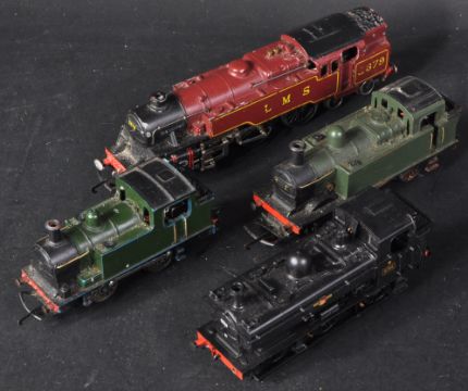 A collection of x4 assorted 00 gauge model railway trainset locomotive engines comprising; G&R Wrenn LMS Maroon Standard Tank 2-6-4t 2679, Bachmann 32-207 Class 8750 0-6-0 Pannier Tank, Triang / Tri-ang R52 Jinty and one other.
