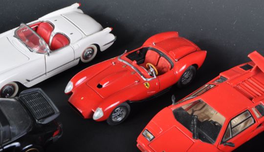 A collection of x8 assorted Franklin Mint and Danbury Mint diecast model cars to include; 1949 Jaguar XK 120, 1989 Ferrari F40, 1986 Corvette, 1988 Porsche 911 and others. Highly detailed models, unboxed and generally appearing VG+ but some may be lacking smaller details.