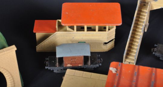 A collection vintage Hornby Dublo 00 gauge model railway trainset locomotives and a selection of rolling stock and trackside accessories. Examples to include Duchess of Montrose loco, British Railways EDL17 tank loco (AF), various rolling wagons, level crossing, platform waiting room, foot bridge, tunnel and a selection of track.