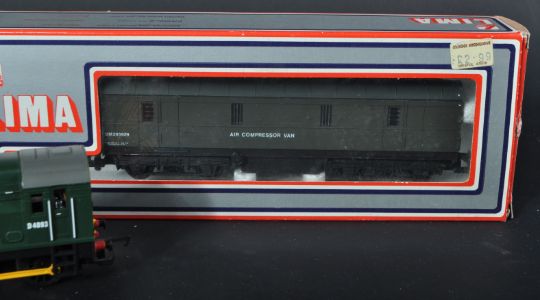 A collection of x3 Lima and Hornby 00 gauge model railway diesel trainset locomotives and carriages comprising; Hornby R1075 Shunter in BR green, Lima 205156 Class 20 D8138 BR Green Late Crest and Lima  305370 Full Brake Air Compressor Van.