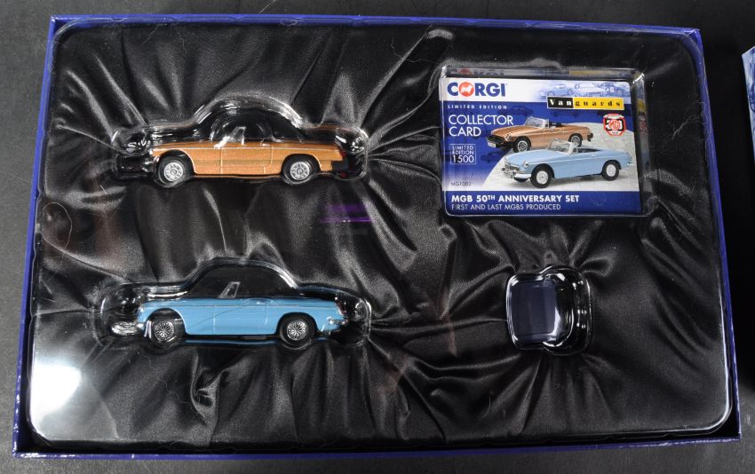 A collection of x7 assorted Corgi Vanguards and Original Omnibus boxed diecast model cars and buses to include; MGB 50th Anniversary Set, Optare Solo Southern Vectis, Mini 1275GT,Ford Escort MK2 and others. Models appearing mint with original boxes and outer sleeves.