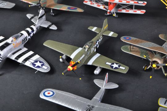 A collection of assorted Corgi ' Aviation Archive ' and other 1/72 scale diecast model aeroplanes of Military / World War interest. Examples to include; Luftwaffe FW 190 F-8, Hawker Hurricane, North American Mustang and others. Unboxed models generally appearing VG+ but some may be lacking smaller details.