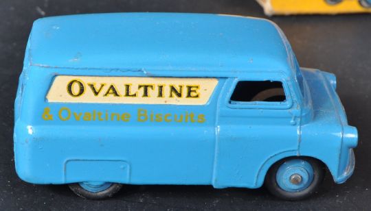 A collection of x4 vintage Dinky Toys boxed diecast model cars comprising No. 344 Estate Car, 481 Bedford Ovaltine Van, 443 National Benzole Tanker and 295 Atlas Bus. Models generally appearing VG+.