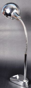 A vintage 20th Century Art Deco style chrome Anglepoise desk / table lamp light having a domed light shade supported by a gooseneck adjustable arm. Single stem raised on an angular base with white plastic push button switch. Measures approx; 49cm x 40cm.