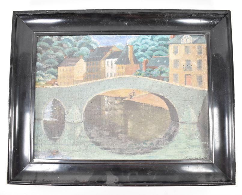 Evelin Winifred Aston (1891 - 1975) - An early 20th century Evelin Aston oil painting on canvas depicting a riverside scenery of Le Vieux Port, France. Signed to the bottom right of the painting. The picture coming framed not mounted. The lot measures approx. 46 x 36cm.