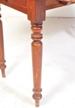 An early 19th century mahogany Pembroke table. The table having leaves either side, and one side has a drawer all supported with turned legs. Measures approx 71cm x 106cm x 97cm.