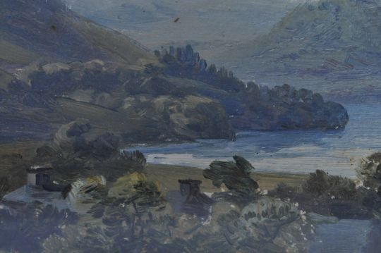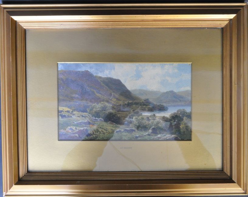 S H Baker (1824 - 1909) A 19th century Victorian oil on board painting having a lake to the right and a mountain side to the right. Framed, mounted and glazed. Unsigned but attributed to the artist. Measures 42cm x 50cm.