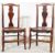 A pair of 18th century North Country elm dining chairs. Each having curvilinear top rail over shaped central back splat and turned wood stretcher frame. Measures approx. 94cm x 47cm x 35cm