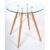 Manner of Charles and Ray Eames - A contemporary designer dining table having a clear glass circular top supported on four tapering splayed beech supports. Measures approx.; 73cm x 70cm diameter.