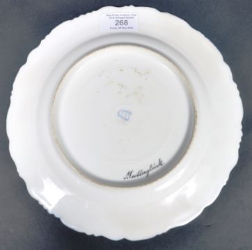 A 19th Century Royal Vienna Austrian porcelain cabinet plate with hand painted depiction of mother and child holding flowers. The plate with cobalt panels to the border and intricate gilding throughout and botanical decoration. Blue shield mark to reverse with painted inscription. Measures approx; 23cm. In good condition with some wear to gilt.