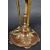 An Edwardian bronze and ormolu three branch desk / table lamp light having three reeded scroll arms with light fittings and faux candle surrounds. Open tapering stem with ormolu supports on lion paw feet and further applied swags. Raised on a circular base on scroll feet supports. Measures approx; 55cm x 37cm diameter.