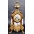 A 19th Century French ormolu clock having a porcelain urn top with floral painted cartouche with ormolu mounts throughout. Below bird sit to each side with the clock having a porcelain hand painted face with Roman numeral chapter ring. Below a pained panel by Sevres depicting a courting couple flanked by two painted pillars. All raised on four ormolu lion paw feet. Measures approx; 40cm x 20cm x 13cm.