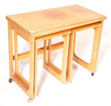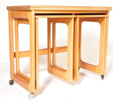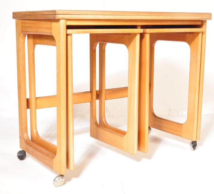 A. H Mcintosh of Kirkcaldy - British Modern Design - A retro vintage mid 20th century circa 1960s teak wood metamorphic nest of tables / coffee table. The nest comprising of a larger table with two subsidiary tables below. Model 6235/67. Measures 62cm x 81cm x 76cm.