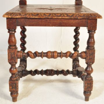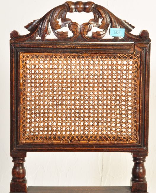 A 19th century Victorian mahogany carved chair having a pierced top rail with acanthus leaf decoration and cane back and decorative carved seat raised upon barley twist and carved supports united by stretchers.