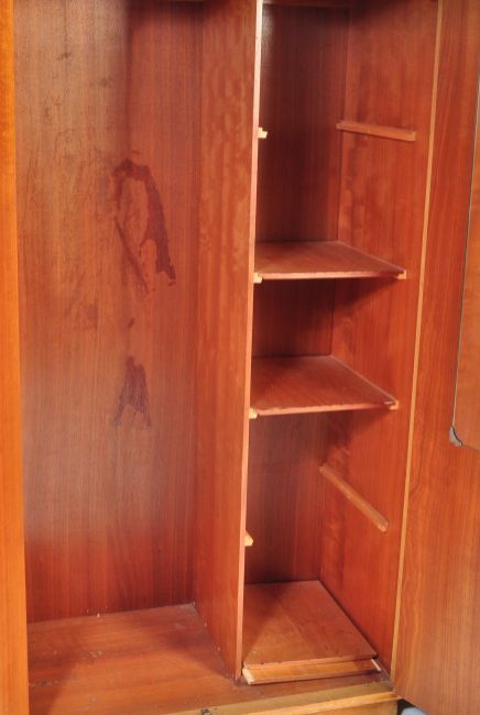 Meredew - British Modern Design - A pair of retro vintage mid 20th century circa 1960s teak wardrobes. Measures 176cm x 122cm x 54cm.