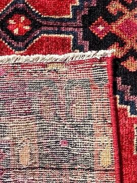 An early 20th century hand knotted Persian Islamic northwest Iran Heriz floor rug carpet. The rug being on a red ground and having a central squared medallion with geometric patterns set within a panel surrounded by geometric patterns to the outer border. Measures 2.48 X 1.40.