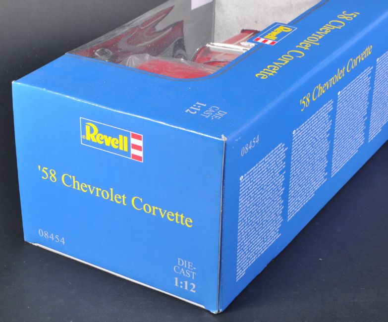 A boxed Revell made 1/12 scale diecast model No.08454 Chevrolet Corvette 58'. Highly detailed model appearing mint and unused within original box.