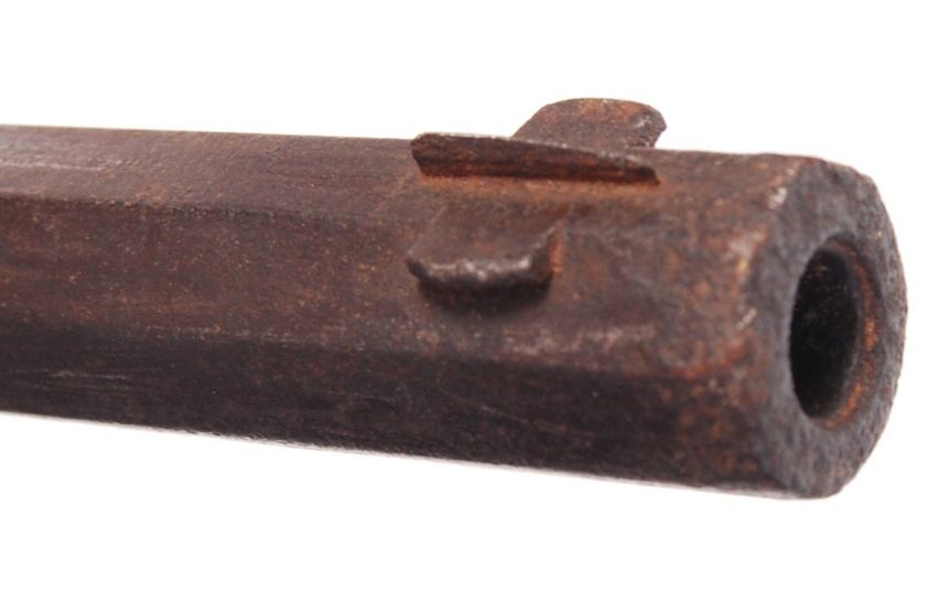 A 19th century obsolete calibre pinfire rifle - European (possibly Belgian) in origin. Break barrel action with an octagonal rifled barrel. The wooden stock with chequered grips, and the top of the barrel engraved for ' Sold By George Gibbs, Bristol '. Measures approx 106cm long.