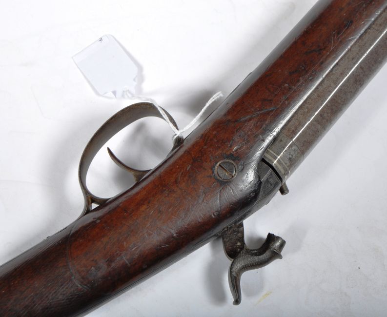 A 19th Century Victorian 1853 Pattern Enfield percussion musket rifle. The rifle having a wooden stock with metal stock plate and trigger and lock plate engraved with scrollwork. The steel barrel having the ramrod cleaning tool to the underside. Measures approx 128cm.