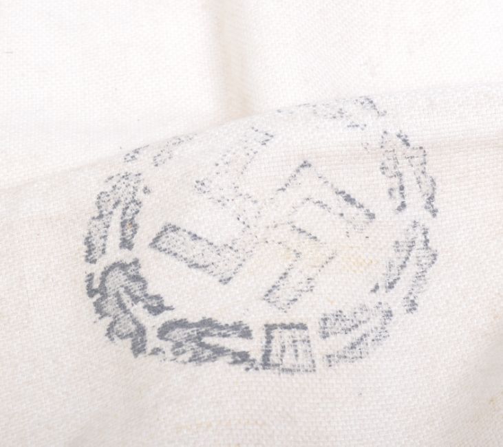 Two WWII Second World War Third Reich Nazi German Kriegsmarine kit bag and grain sack. Both of linen construction, the grain sack having the Swastika and eagle emblem to the centre and the kit bag unmarked with rope drawstring to the top.