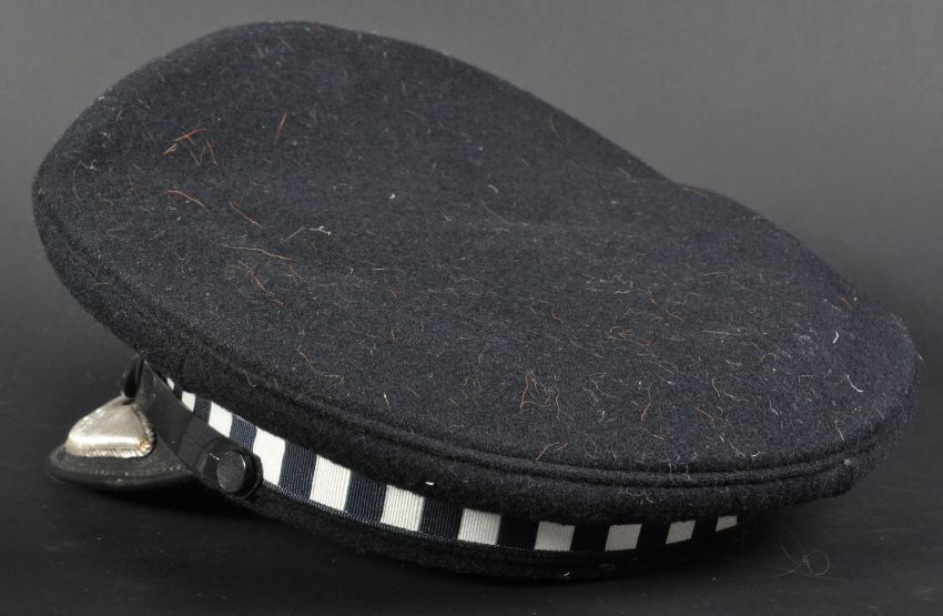 An original vintage Scottish Chief Inspector Police uniform hat / cap. The flat peaked cap having a silver