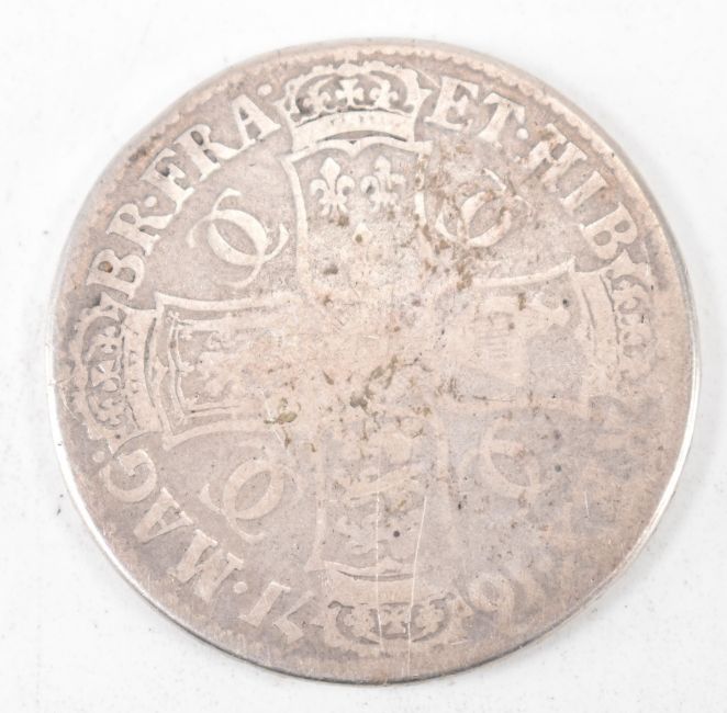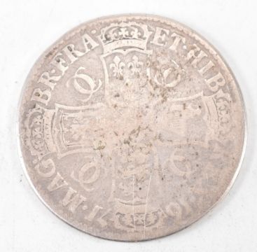 A Charles II 1671 silver crown having Monarch in profile to the obverse and shield of arms to the reverse. Gross weight 28.60g. Measures 39mm.