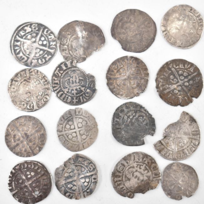 A collection of 16 medieval 13th century coins comprising of a Edward I Long Cross Penny (Bristol Mint), Edward I Penny of Canterbury x 5, Edward I London penny x 8, Edward I Long Cross Penny Durham Mint x 2,