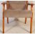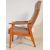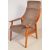 A retro vintage mid 20th century circa. 1960's teak wood armchair having an upholstered back rest and seat with bent wood elbow rests with padding raised over angular supports.