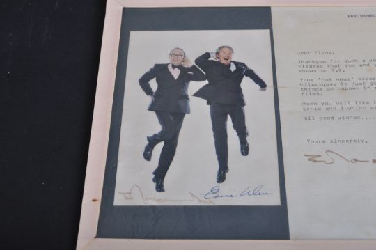 Autographs - British Comedy - a collection of mostly signed autographed photographs from various 1970s / 1980s British Comedy actors / comedians. Includes; Griff Rhys Jones, Joanna Lumley, Barry Humphries, Windsor Davies, The Two Ronnies (Ronnie Barker & Ronnie Corbett - folded, mounted to card), Mollie Sugden, Diana Rigg, Roy Hudd, Richard Briers, Donald Sinden, Michael Crawford, Penelope Keith, Christopher Timothy, Peter Egan (signed photo and letter), Christopher Biggins, Benny Hill, and Paul Eddington (signed photo and letter). Various conditions, some a little faded.