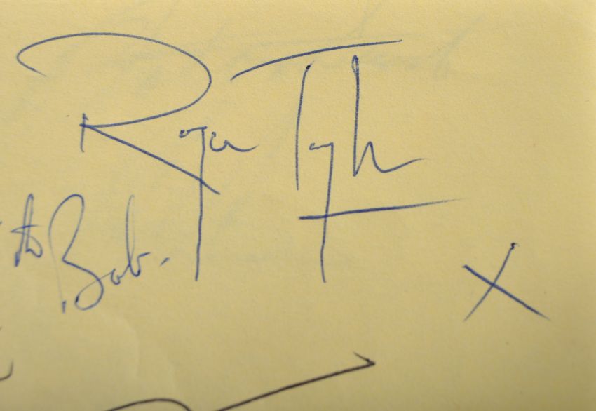 Queen - Freddie Mercury, John Deacon, Brian May and Roger Taylor - an exceptional full-band autographed album page, signed by all in blue and black ink. Taylor adding ' Have Fun ', and May adding 'To Bob'. All personally obtained by the vendor. Page measures approx; 10cm x 15cm. No autographs on reverse.