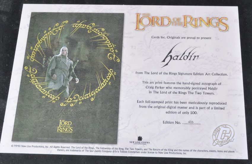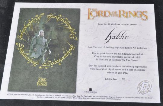 Lord Of The Rings - Craig Parker ( Haldir ) autograph - an original Cards Inc Limited Edition lithographic art print of Parker signed neatly in silver ink to the bottom left portion of the print. Complete with certificate of authenticity and tube packaging. Limited to 500 prints only.