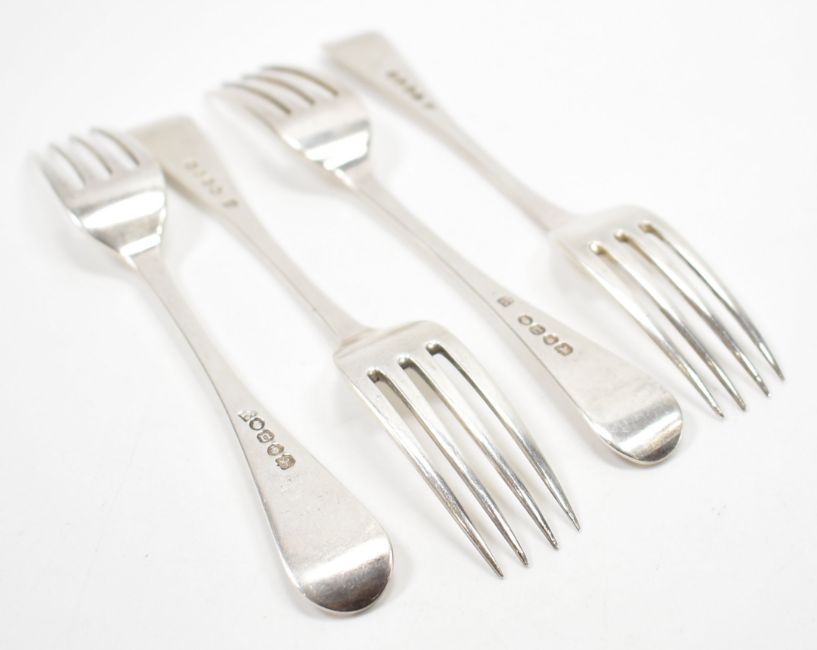 A group of four 19th Century Joseph & Albert Savory William IV silver hallmarked forks. All hallmarked London 1835. Measures 16.5cm. Weight 170g.
