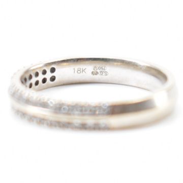 A hallmarked 18ct gold and diamond half eternity ring. The ring being set with two rows of diamond accent stones. Hallmarked London. Weight 2.8g. Size K.