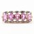 A gold diamond and pink stone ring. The ring having a row of five oval cut synthetic pink sapphire within claw settings with diamond accent stones to the surround. Ring size M. Marked 375. Marks rubbed. Total weight 2.6g.