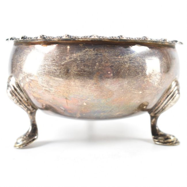 An early 20th Century Edwardian antique silver hallmarked sugar bowl. The bowl having gadrooned rims and raised on three cab feet. Hallmarked Sheffield 1901, James Dixon & Sons. Measures 11cm diameter. Weight 212g.