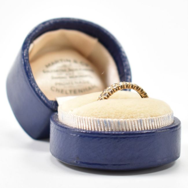A hallmarked 18ct gold and diamond half hoop ring. The ring being set with 24 round cut diamonds to the head. Hallmarked Birmingham 1975. Weight 2.6g. Size N. Diamonds estimated 0.25ct.