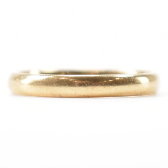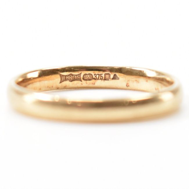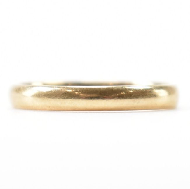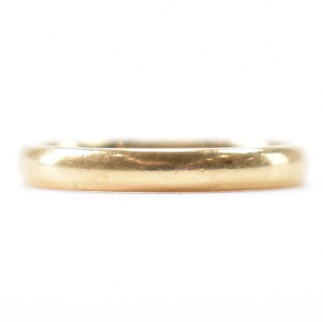A hallmarked 9ct gold wedding band ring of plain form. Hallmarked London. Weight 2.1g. Size P.5.