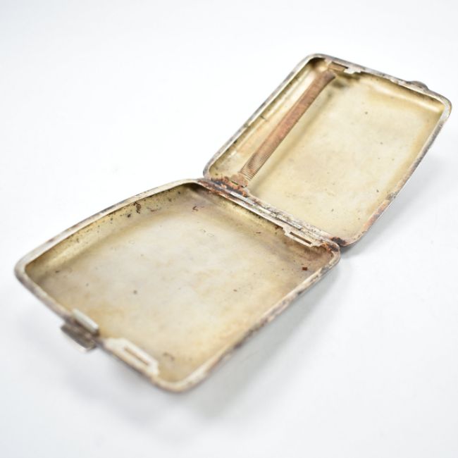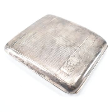 Two vintage mid 20th Century silver hallmarked cigarette cases. Both having engine turned detailing with initial panel to the corners. Both hallmarked Birmingham 1946. Measures 9.5 and 10cm wide. Weight 251g.