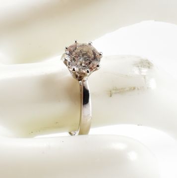 A white gold and diamond single stone solitaire ring. The ring being set with a round brilliant cut diamond. Diamond measures 7.2 x 4.7mm. Weight 3.3g. Size M.5. Marked 18ct to band.