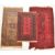 An assortment of three vintage 20th century rugs to include a Persian manner rug with olive ground and decorative medallions, a Turkish manner prayer rug with red ground and red and black border. Together with a black and red carpet with three central medallions. Rugs measuring 117cmx 77cm // 82cm x 162cm // 170cm x 62cm.