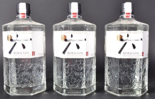 Roku Japanese Gin - Three bottles of Roku Japanese Craft Gin 43% vol 700ml. In good condition.